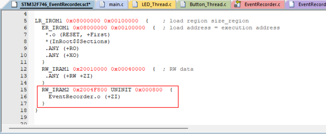 3)打開“.scr”散布文件,修改Event Rerorder對應(yīng)的值,如圖4-3所示: