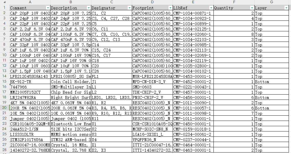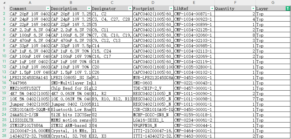 4. 通過數據篩選進行頂層和底層器件區分,方便進行焊接和調試。