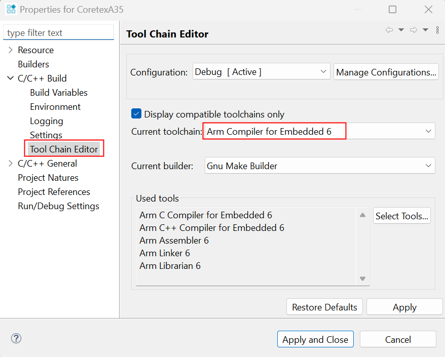 2)、在“Tool Chain Editor ”中,選擇Compiler6,如圖4-2所示: