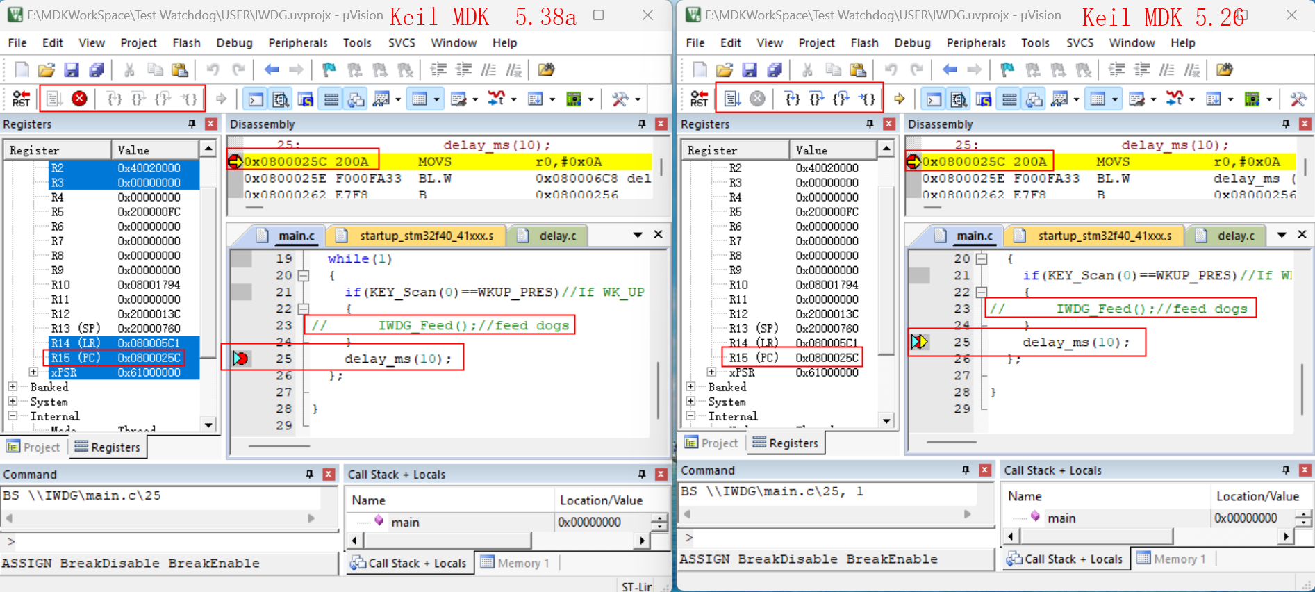 解決MDK5.38與5.26中Watchdog的呈現不同現象問題
