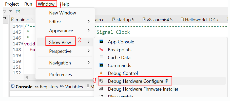 1)、打開(kāi)ArmDS,選擇“window-->Show View-->Debug Hardware Configure IP”, 打開(kāi)IP配置窗體,如圖4-1所示:
