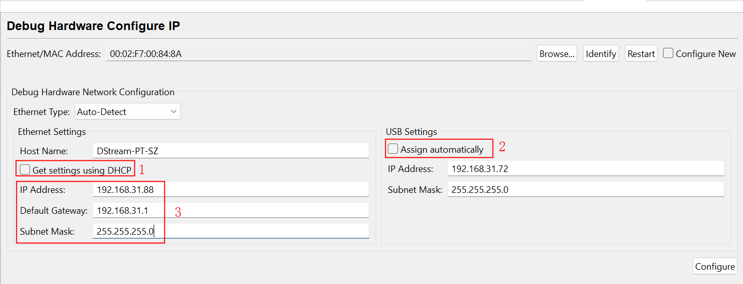 2)、把“Assign automatically”的勾去掉,輸入正確的“Host Name”和IP等,再點(diǎn)擊“Configure”,如圖4-2所示: