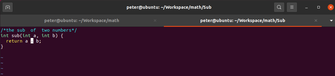 1)、在math目錄下,創(chuàng)建一個(gè)子目錄:Sub,并創(chuàng)建一個(gè)sub.c文件,文件的內(nèi)容如下: