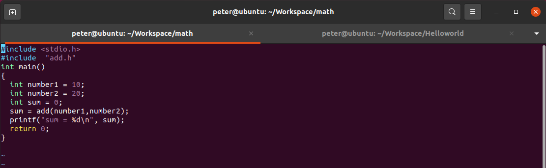 1)、在Linux系統(tǒng)的工作目錄下創(chuàng)建一個(gè)目錄:math, 再在該目錄創(chuàng)建兩個(gè)子目錄:add和include. 如圖4-1所示: