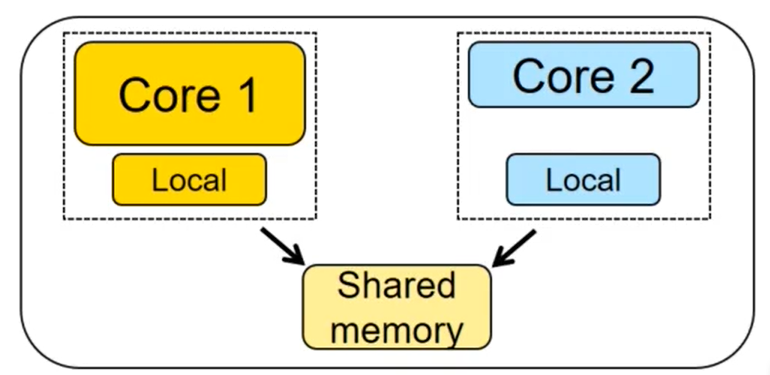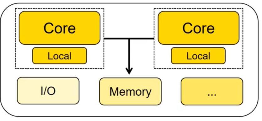 2個以上的相同內核;共享同一個主要內存、外設、中斷、控制器等;每個內核擁有自己的寄存器,功能單元甚至是本地的內存核cache。
