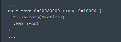方法3)、最安全的解決方法是將鏈接器分散文件中的.ANY選擇器替換為*(如果可能的話)。如果你使用的是自定義散射文件,你可以這樣修改它: