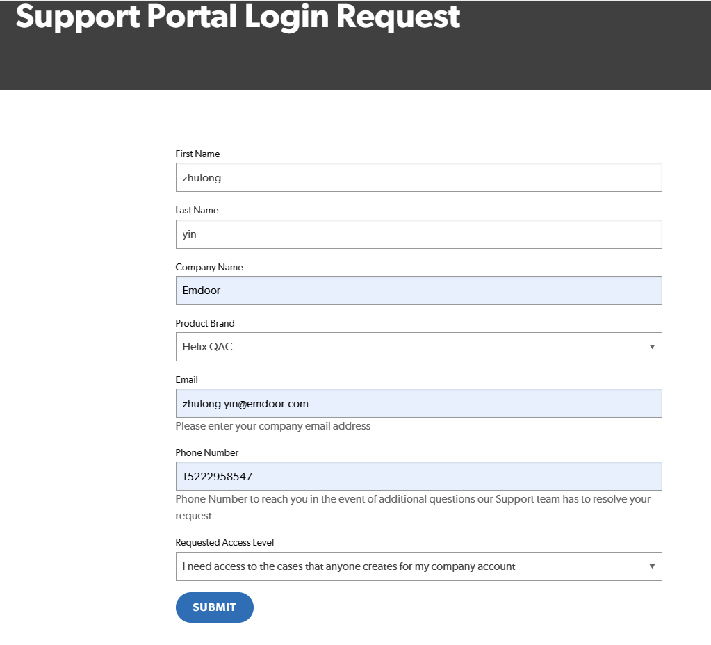 2、在下列表格中填寫(xiě)自己的個(gè)人信息、公司名稱、郵箱、電話和賬戶訪問(wèn)等級(jí),然后點(diǎn)擊“SUBMIT”提交。