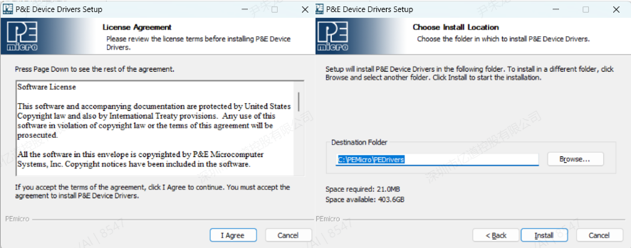 下載完成后,安裝P&E,同意許可協議,選擇安裝目錄進行下載。