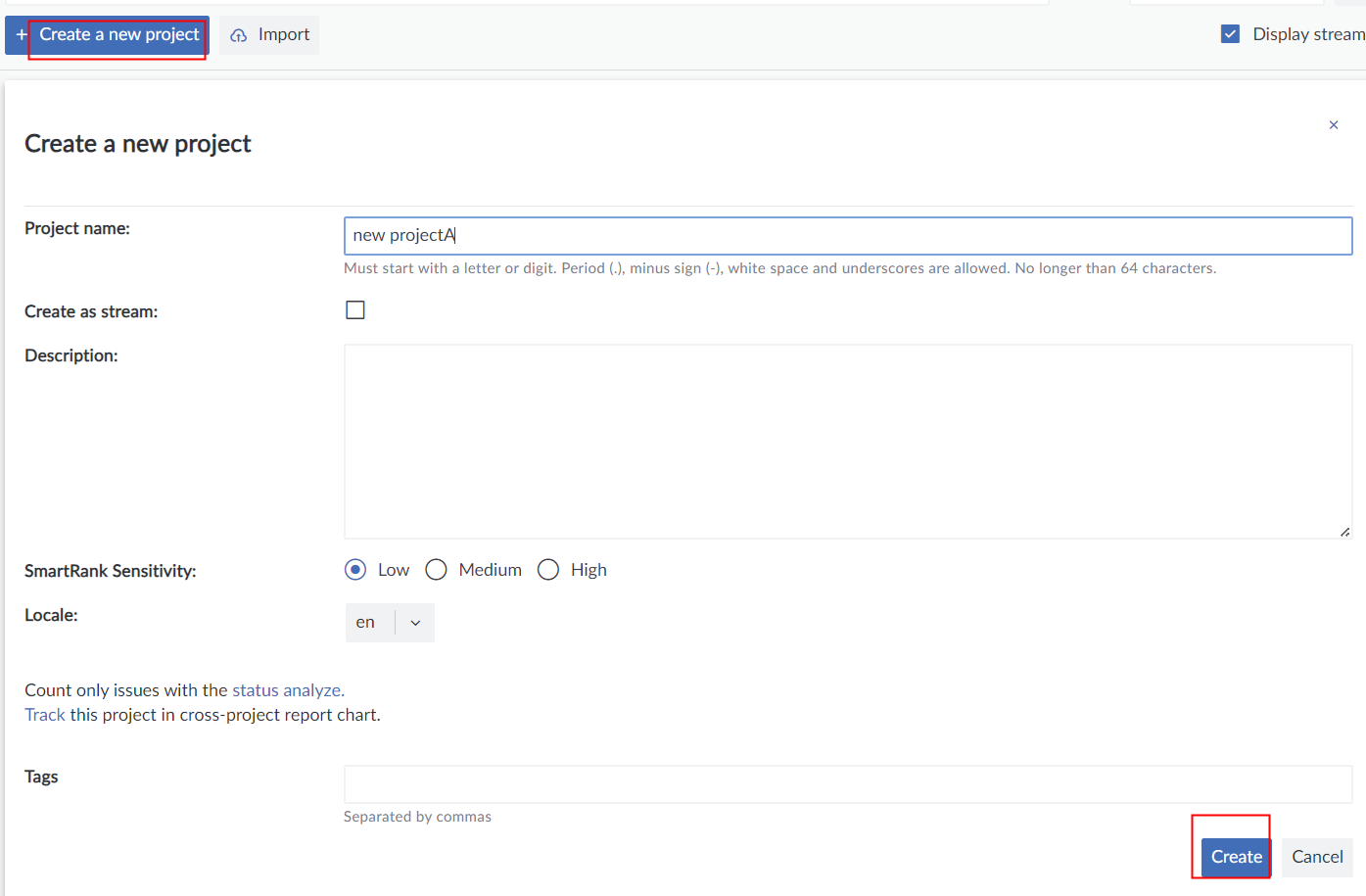 2、彈出窗口中輸入項(xiàng)目名稱,可以和QAC項(xiàng)目名稱不一致,點(diǎn)擊“Create”;