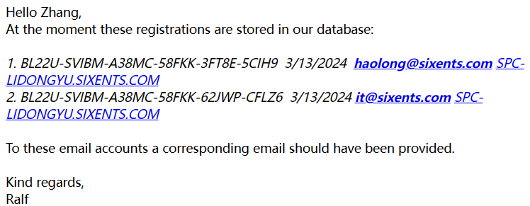 原廠會給到包含 LIC 碼及對應郵箱提交的信息。僅提供一個 LIC 信息給到用戶。