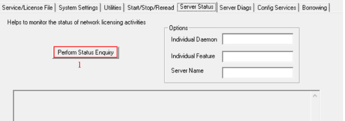 點擊標記3處:停止在此計算機上安裝的?FlexNet 許可證服務列表中處于活動狀態的許可證服務器。單擊該按鈕后,狀態欄將顯示信息正在停止服務器,經過幾秒鐘時間后會停止許可證服務器。服務器停止后,該信息不會發生變化。
