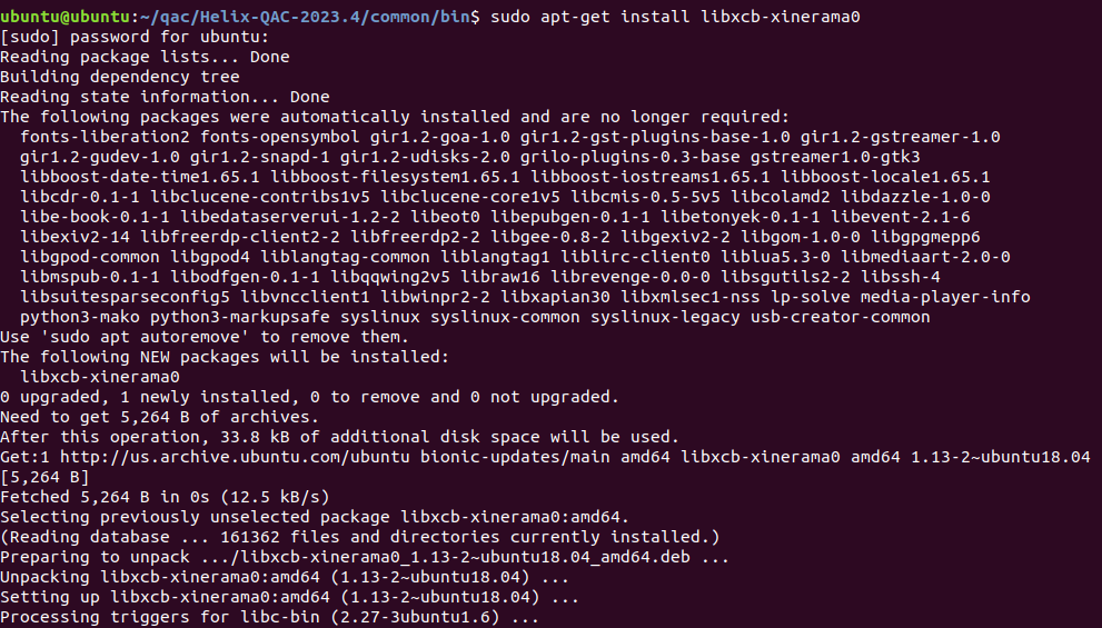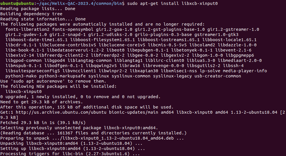 2、安裝 libxcb-xinput0,命令行輸入命令sudo apt-get install libxcb-xinput0