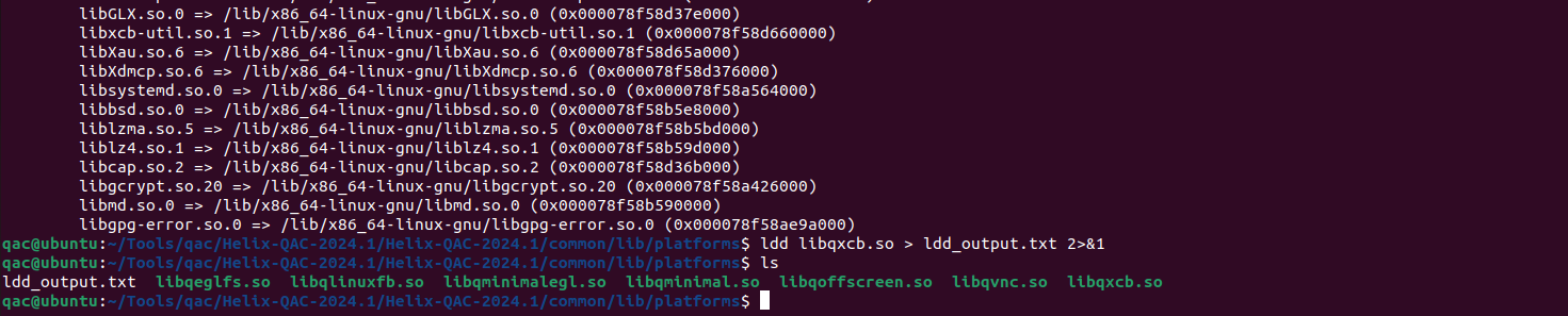 2)、運行<ldd libqxcb.so > ldd_output.txt 2>&1>,將配置信息存儲至txt文件內,以供快速交流。