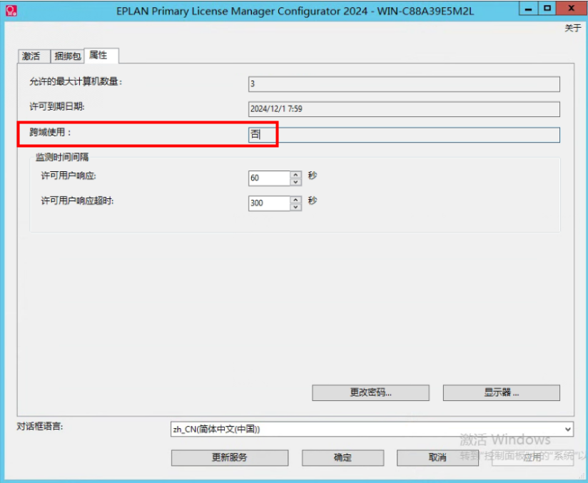 未激活License Manager'192.168.10.59'中的跨域使用功能
