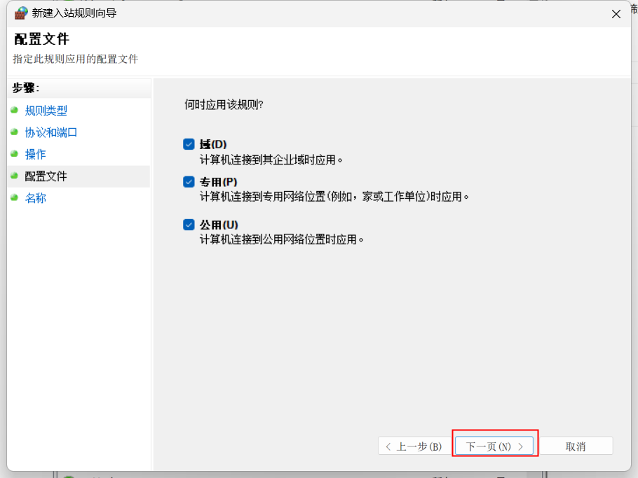 6)、應(yīng)用規(guī)則均選擇,”再點(diǎn)擊"下一頁(N)"