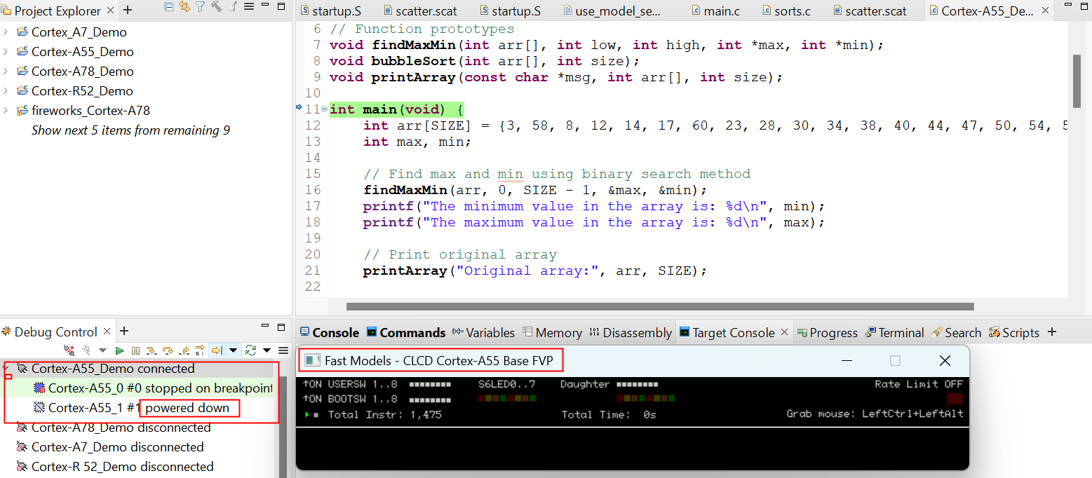 在調用ArmDS的Fast Models中的Cortex-A55的模型,只有Core 0是上電狀態,而Core 1處于掉電狀態,如圖2-1所示: