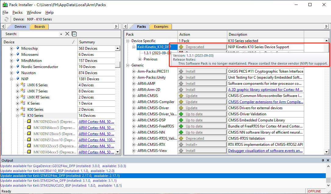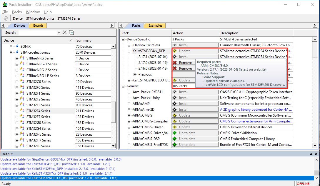 在包管理界面中,選擇要卸載的 Pack 包,(例如:STM32G4xx_DFP),并點擊 Remove,可以進行移除。