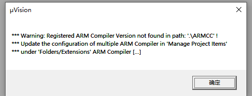 *** Warning: Registered ARM Compiler Version not found n path:'.ARMCC'!