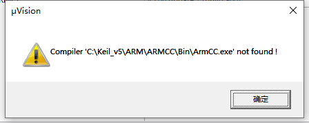 嘗試重新添加,提示警告:Compiler 'C:Keil v5ARMARMCC Bin ArmCC.exe' not found !