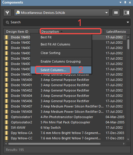 1、在 Component 的窗口中,右鍵點擊 Description ,選擇 Selet Columns...