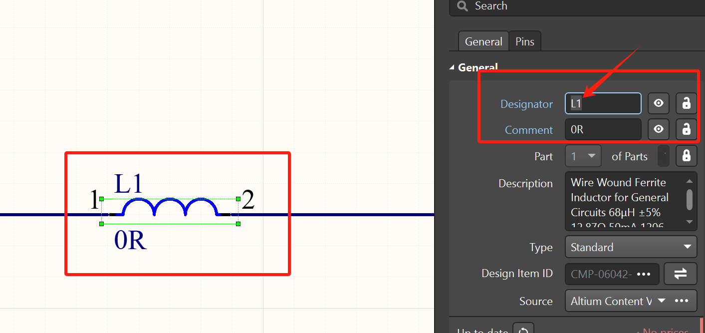 (1)、檢查發現設計建庫不規范,原理圖里用的是電感的器件符號,Designator用的是電感默認的標識符L、但是comment值卻賦予一個電阻值,如圖4
