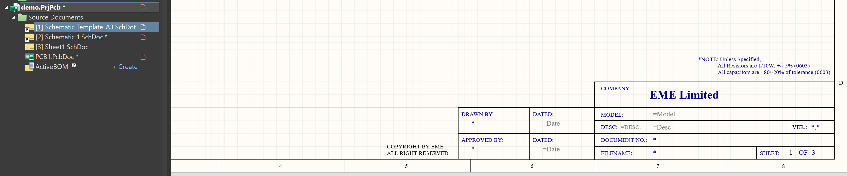 1)、打開原理圖模板文件(*.SchDot),點擊右下角的文本將其多余的文本刪掉然后保存(如圖2)。