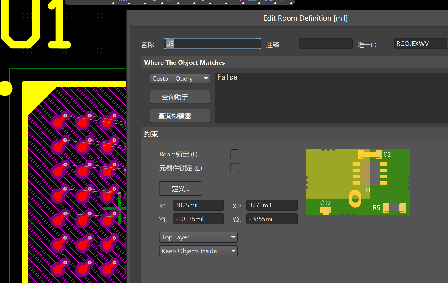 1)、在BGA元器件封裝本體范圍放置一個room