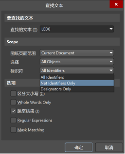 "All Identifiers":同時檢索元件位號、網絡標號及自由文本