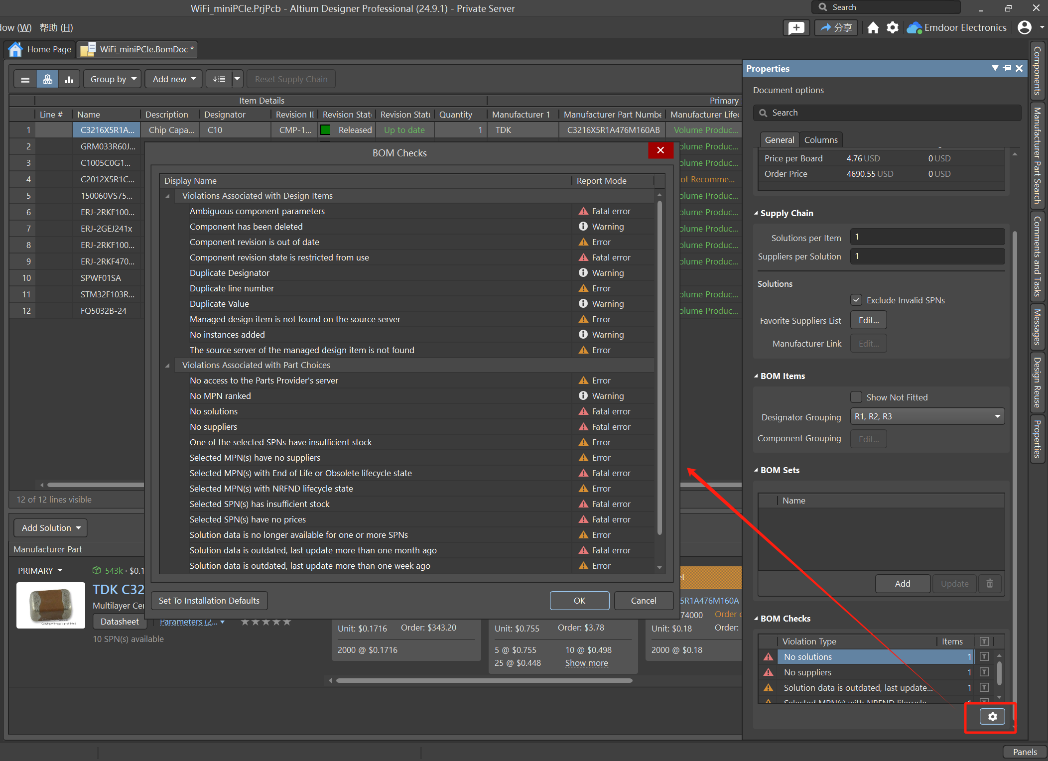 ○ Violations Associated with Part Choices(與元件選擇相關的違規):包括測試,如未分級的MPN(僅系統分配等級)、無供應商或確實的目標價格。