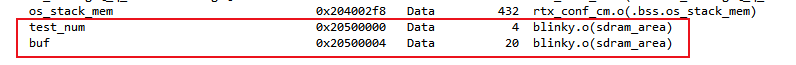 4)、然后,在源文件中,將利用宏定義去用SDRAM_AREA_ATTRIBUTES標識符去標識__attribute__((section("sdram_area")))語句。在使用的時候,就可以按照下面代碼段中的方式去使用。