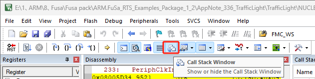 2)、Call Stack + Locals窗口可以通過菜單欄View->Call Stack WIndows打開(如圖4-2-1)或者直接在工具欄中點擊Call Stack Windows的按鈕打開(如圖4-2-2)。