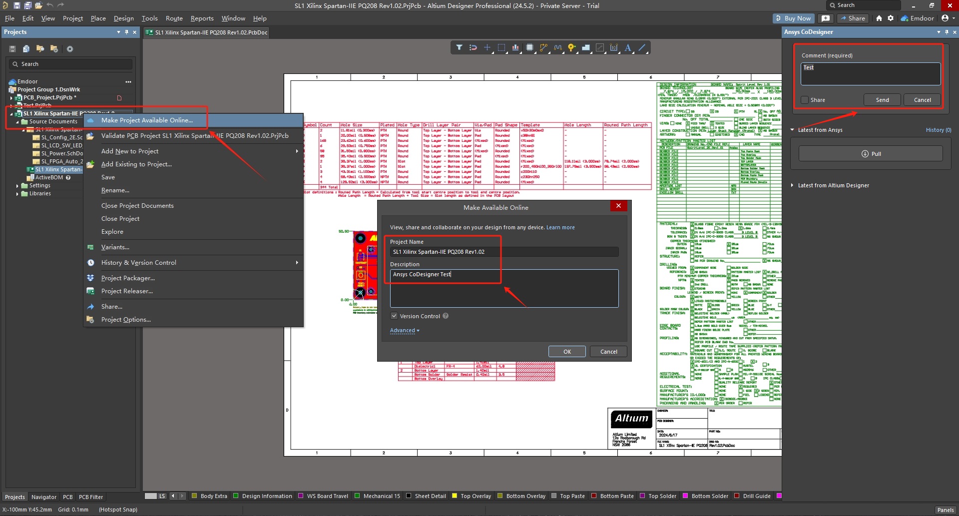 在【Comment】傳輸窗口中,詳細闡述測試參數、觀測內容或具體問題情境。隨后,選中導出EDB)文件及仿真結果。最后,點擊【Push to Altium 365】指令,以安全高效的方式將這批經細化處理的數據包同步回 Altium Designer 24 平臺,實現設計環境間的信息無縫對接與高端協同作業。此舉不僅優化了設計驗證流程,還促進了團隊間的信息透明度與工作流集成度。