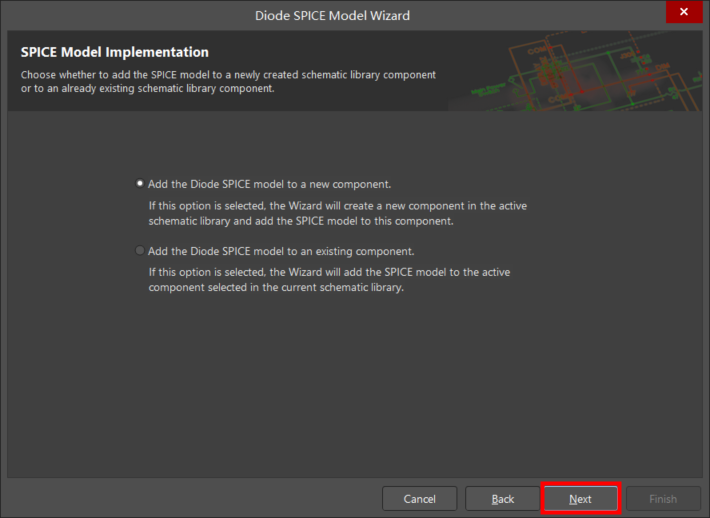 如果選擇此選項(xiàng),向?qū)PICE模型添加到當(dāng)前原理圖庫中選擇的活動元件。