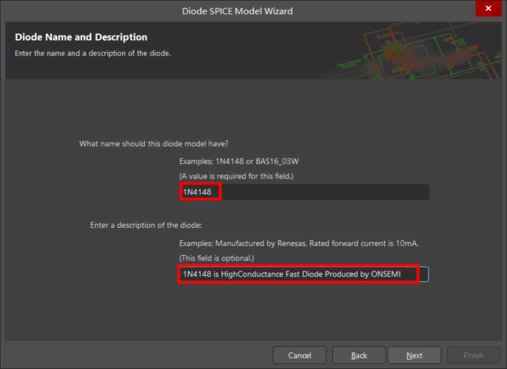 b. Enter a description of the diode(輸入二極管的描述):