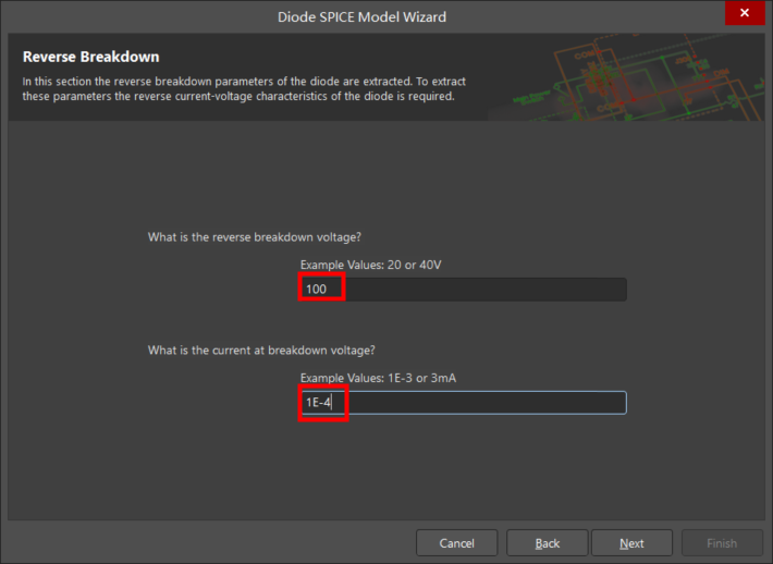 單擊 Next 按鈕。如圖 11 所示,出現(xiàn) Reverse Breakdown(反向擊穿)對話框,按如下參數(shù)設(shè)置: