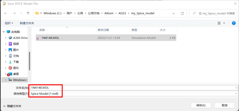 10. 單擊 Finish 按鈕。出現(xiàn)對話框,提示保存SPICE模型,將其保存到 my_SPICE_model 目錄下。