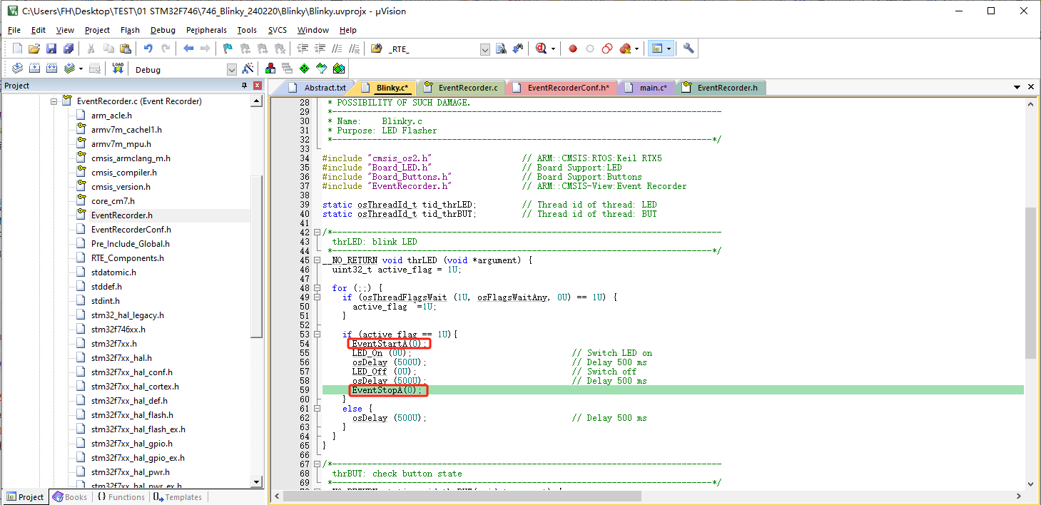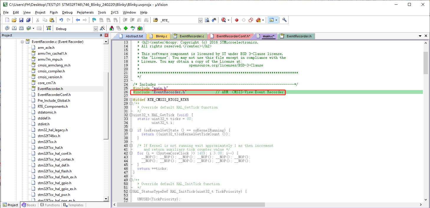 在 Blinky.c中包含 EventRecorder.h 頭文件