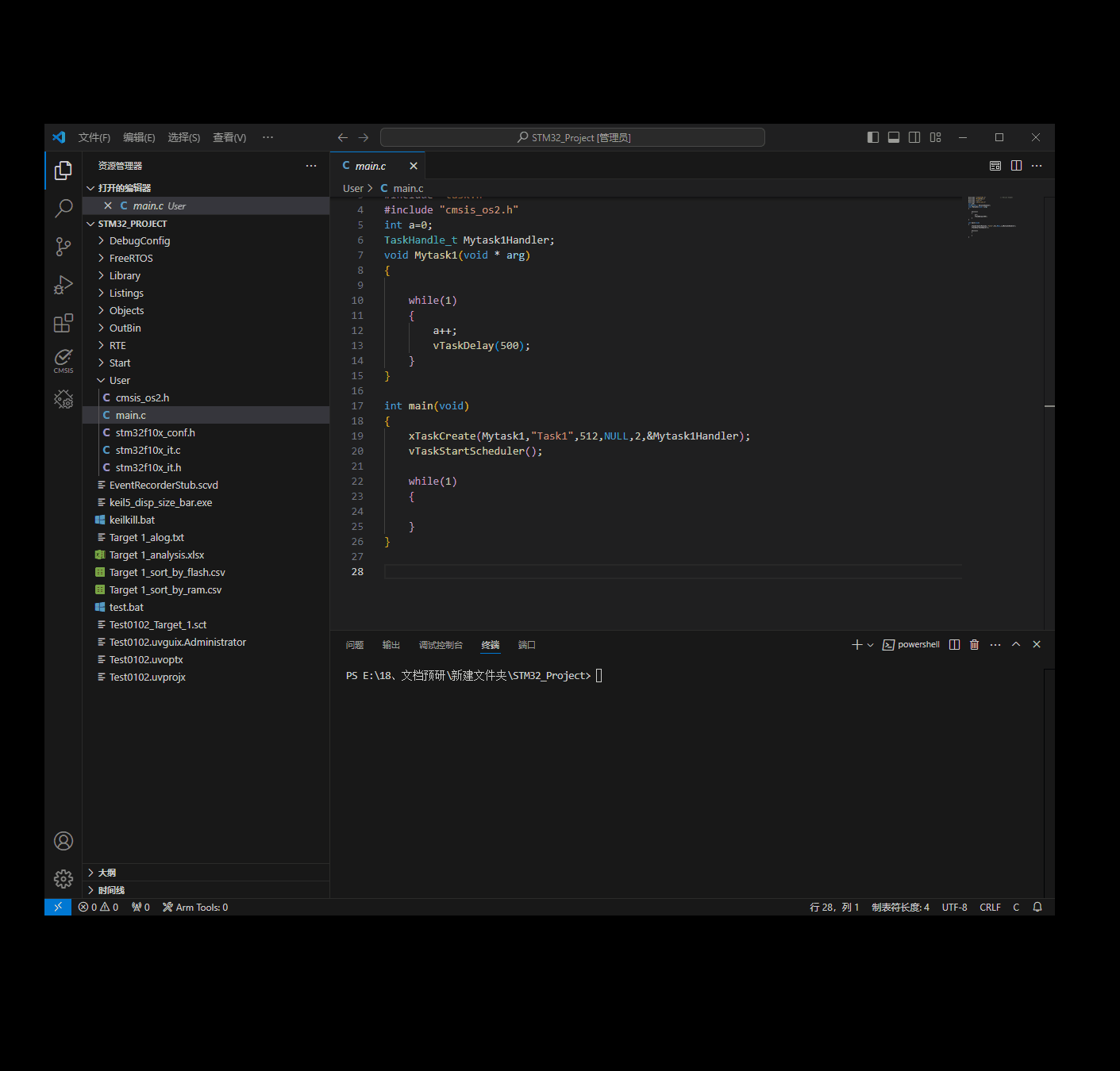 亦或者,可以搭配第三方軟件工具,比如:VS Code進行代碼的編寫,然后調試時,在VS Code的終端輸入調試命令,來快速打開原生的KEIL進行調試,詳情請見下方GIF_0。(注意:使用命令行調試,調試退出后,軟件也會自動退出。)