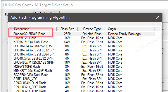 第 30 行:"New Device 256kB Flash", //設備名稱,這里其實就是在勾選 Flash 燒寫算法時,會被軟件調用并顯示的內容,如下圖 6 所示: