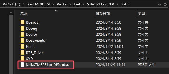 (10)、接著打開 DFP 包中的 PDSC 文件(這個文件的屬性默認是只讀的,記得去掉勾選),路徑如下圖 13 所示: