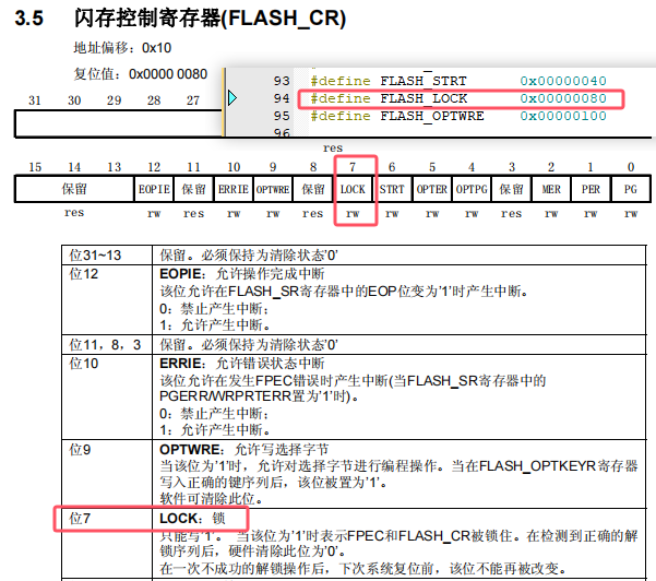 第 4 行:FLASH->CR |= FLASH_LOCK;