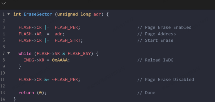 第 15 行:if (FLASH->SR & (FLASH_PGERR | FLASH_WRPRTERR)) {