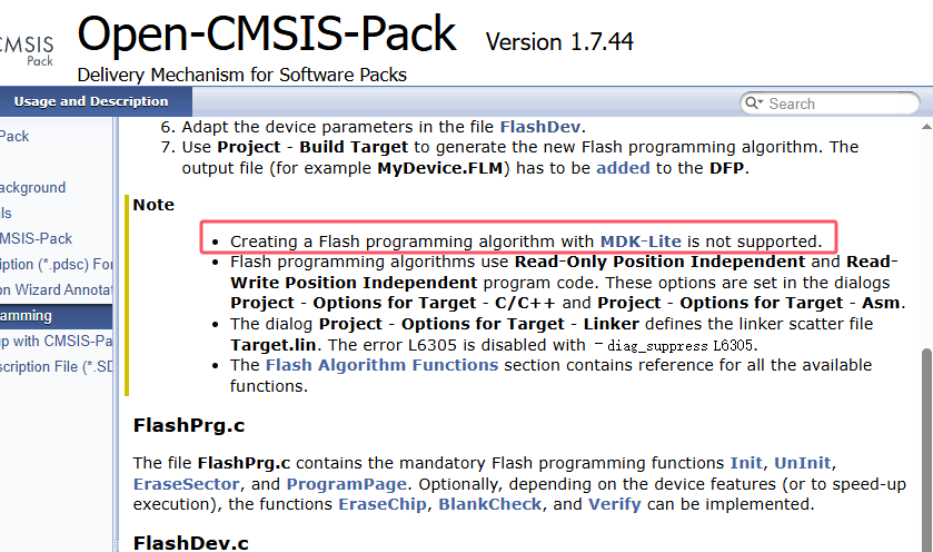 答 ①:MDK-Lite 不支持創建 Flash 編程算法。如圖 32 所示: