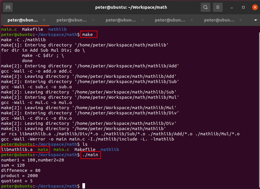 1. 在“math”目錄下,運行"make",然后執行目標文件,如圖4-1所示: