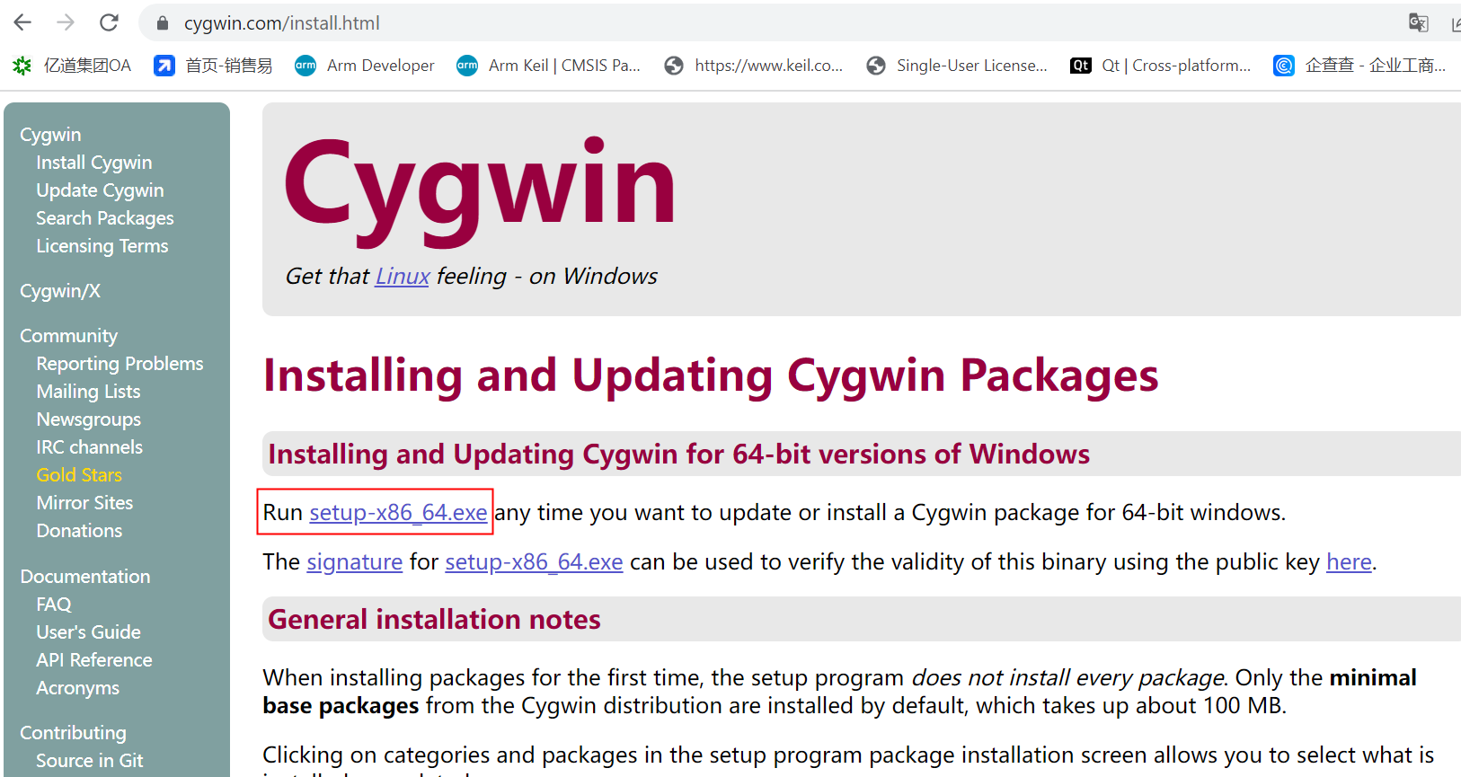 ? 運(yùn)行安裝程序:運(yùn)行下載的setup-x86_64.exe(或相應(yīng)版本)。