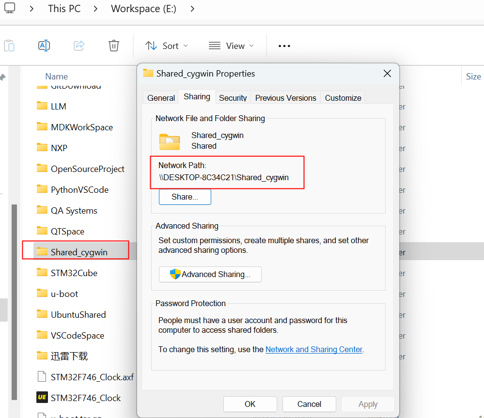 3. 在Windows 11中創(chuàng)建一個(gè)共享文件夾,比如"Shared_cygwin",如圖3-3所示: