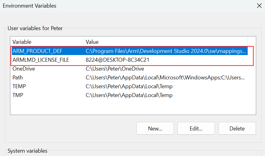 7. 在Windows系統(tǒng)下設(shè)置好ArmDS的License的環(huán)境變量,如圖3-7所示: