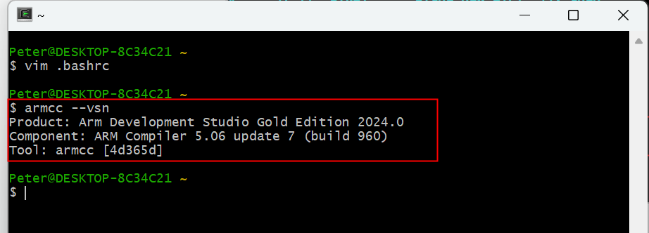 9. 運(yùn)行“armcc --vsn”, 驗(yàn)證授權(quán)環(huán)境,沒(méi)有錯(cuò)誤,說(shuō)明授權(quán)環(huán)境沒(méi)有問(wèn)題,如圖3-9所示: