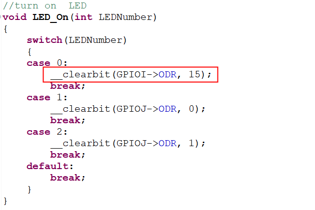 3. 再創(chuàng)建一個關(guān)閉LED的函數(shù):LED_Off。