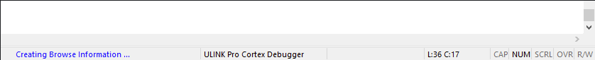 但是,在compiler 6中對于瀏覽信息的生成不再依賴于編譯構建的這一個過程。使用Compiler 6的情況下,Uvision IDE在打開工程的情況下,就會在后臺自動地產(chǎn)生瀏覽信息,在狀態(tài)欄中會提示“Creating Browse Information ...”(如圖4),因此使用Compiler 6在構建工程的時候,對于瀏覽信息的生成就不會再占用工程構建的時間。